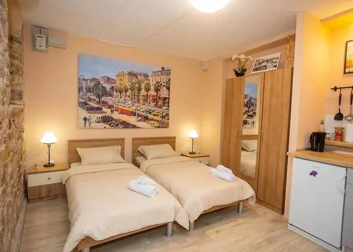 バチュヴィツェ・ビーチまでは車で数分で、フロッギーランドはこの20m²のアパートのすぐそばにあります。 ディオクレティオヌス宮殿から100メートルです。